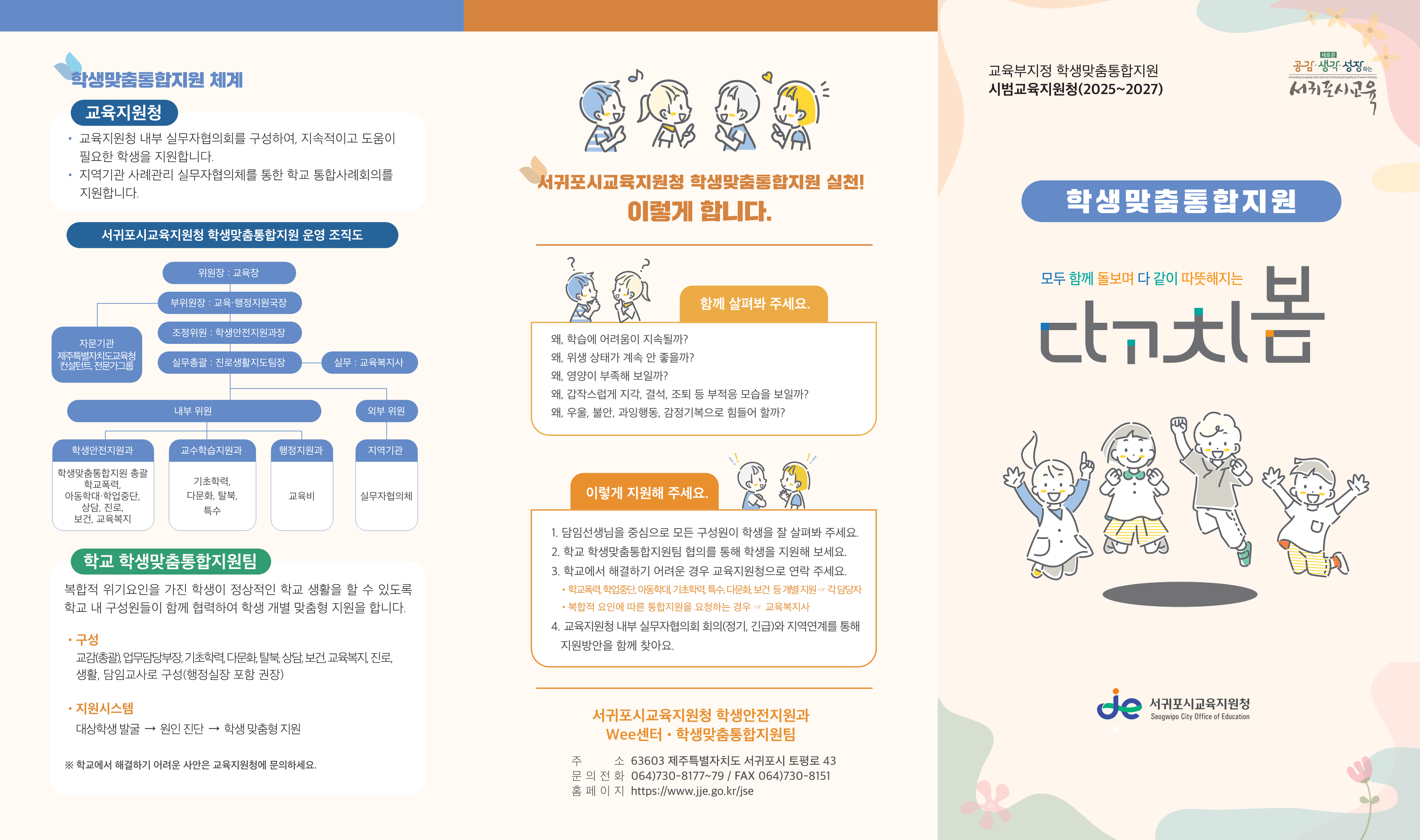 시범교육지원청 1년차 운영하고 있는 제주 서귀포시교육지원청 학생맞춤통합지원 홍보 리플렛입니다.